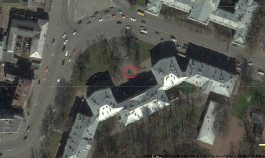 Просто угол улиц не был срезан, как сейчас, и был довольно большой скверик,