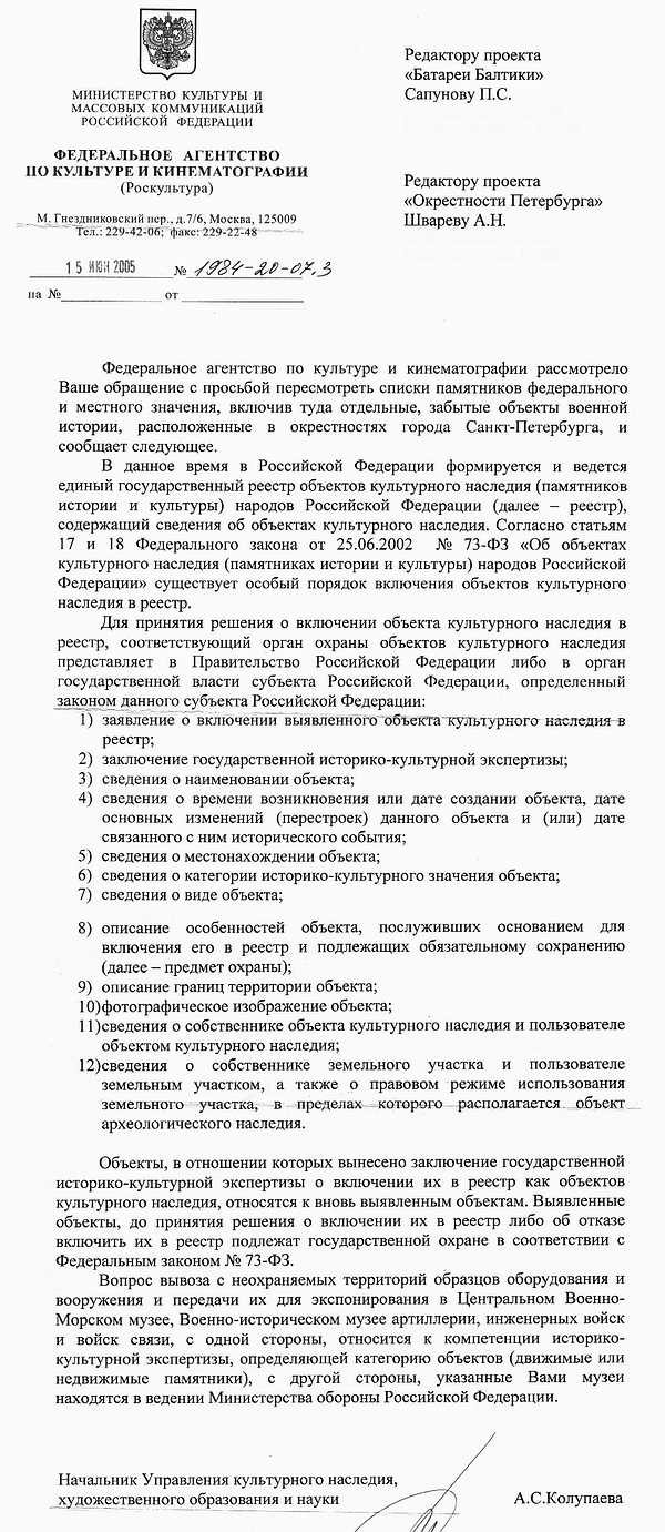 из Роскультуры [сообщение #6309 является ответом на сообщение #5099] вт, 05 июля 2005 16:39 Переход к предыдущему сообщения