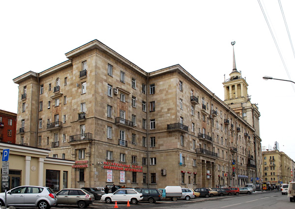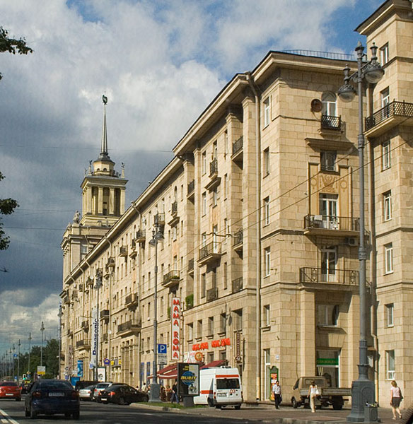 Вот разный фото этого дома.На первой и третьей венок параллельно Московскому,а на второйпод углом почти в 90 градусов..