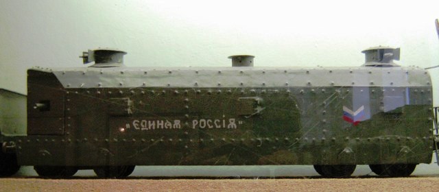 Сегодня обратил внимание в том же музее на вот такой курьез - модель белогвардейского бронепоезда, то бишь на его название.