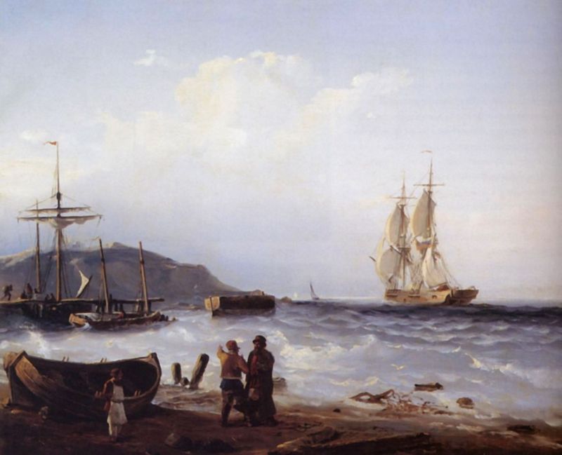 А также встречается исходная картина, но с названием "Кронштадт" и реквизитами:Кронштадт. 1851,Холст, масло. 72 x 90.3 см