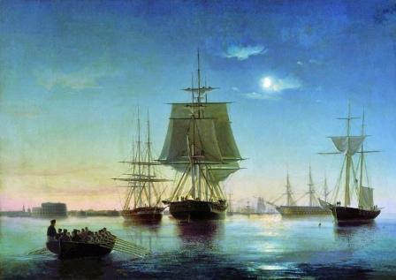 2)картина 1855 г. "Кроншадтский рейд с кораблями вечером"