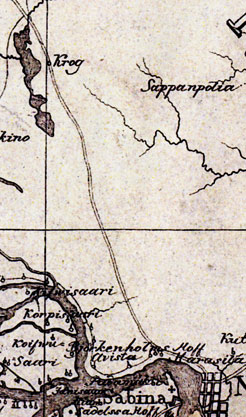 1676 г. Карта показывает состояние местности на 1676 год, но выполнена в 1827 году. Скорее всего это была перерисовка с шведских карт, дорога показана более чем условно.