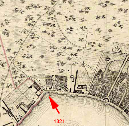 Однако на карте 1821 года это место выглядит несколько иначе