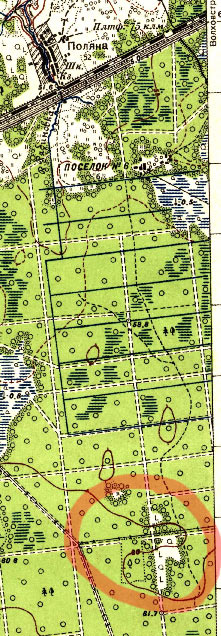 На карте 1939 года обвел подходящее под описание место: